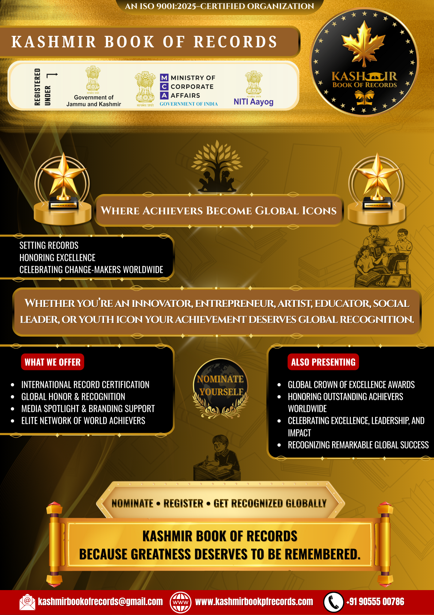 The Kashmir Book of Records (KBR) documents and celebrates remarkable accomplishments that inspire generations and showcase the incredible talents across India.